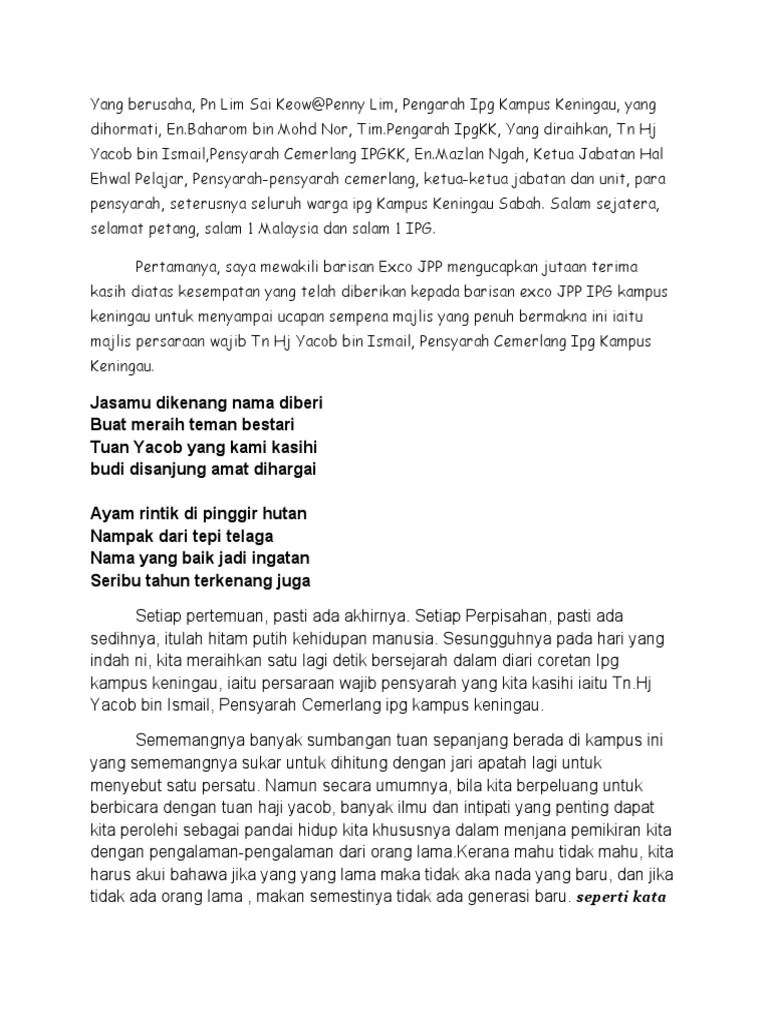 Contoh ucapan wakil murid untuk majlis persaraan. Guru bukan hanya mengajar kami tapi juga membimbing kami. ٤ Ų°Ł Ų§ŁŁŲ¹ŲÆŲ© ٔ٤٤٣ ŁŁ. Ucapan ydp pibg sempena persaraan guru besar. Teks ucapan perpisahan guru bersara. Mutiara kata persaraan guru cikimm com.